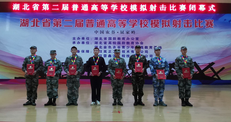 本网讯 10月17日至20日,在荆门金色农谷青少年实践教育基地,湖北省第二届普通高等学校大学生模拟射击比赛落下帷幕。我校代表队获团体二等奖;体育学院学生陈金波获男子个人三等奖、李祖平老师获优秀指导员奖;学校获评优秀组织单位奖。