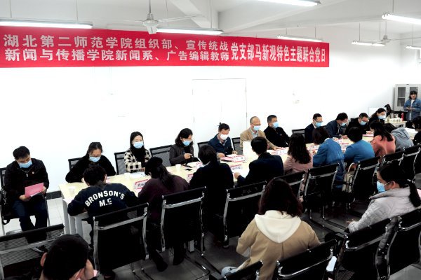组织部、宣传部、统战部,新传学院新闻系教师党支部、广告编辑教师党支部全体党员参加会议。(编辑 张震 摄影 忠强)