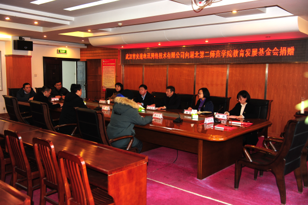 本网讯(通讯员 陈薇)12月24日下午,武汉市光速电讯网络技术有限公司捐赠仪式在我校行政楼四号会议室举行。校党委常委、副校长胡兴出席捐赠仪式并代表学校接受捐赠。