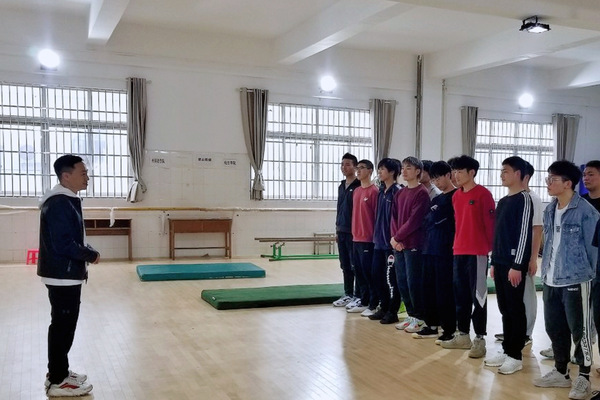 在现场,杨威与18级、19级体操专选班,20级上体操课的同学展开互动交流,对学生体操练习动作进行指导。(编辑 张震)