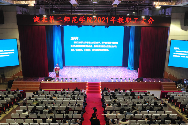 本网讯(融媒体记者 程丽鹃 见习记者 杨新越)3月18日下午,学校在大礼堂举行2021年教职工大会,对过去两年工作进行总结表彰,对2021年重点工作进行部署。全体校领导、教职工参加大会。会议由党委副书记许邦官主持。