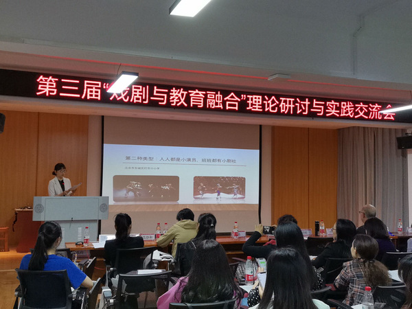 台湾艺术大学戏剧教授张晓华教授作《学校戏剧教育的台湾经验》主题报告,综述台湾应用戏剧的范联与运作情况,浅谈戏剧在台湾的应用领域与实践;北京地坛小学康健老师以《我眼中的北京中小学戏剧教育》为题,分享了北京中小学戏剧教育经验;湖北工业大学梁琴老师介绍了戏剧在英国传播的案例;我校戏剧教育研究中心王培喜老师以《戏剧化教学的课程设计原则与教学要求》为主题,辨析戏剧教育的两种普通观点,分析了实践经验。