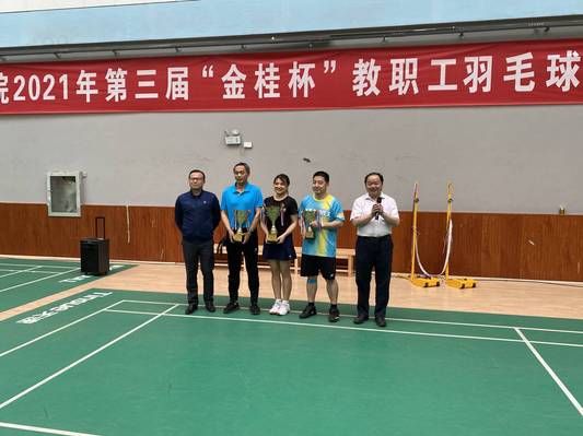 本网讯(通讯员 周劲松)5月6日下午,由校工会主办,体育学院工会承办的第三届“金桂杯”教职工羽毛球赛圆满落幕。校党委副书记许邦官、副校长夏力出席闭幕式并颁奖。