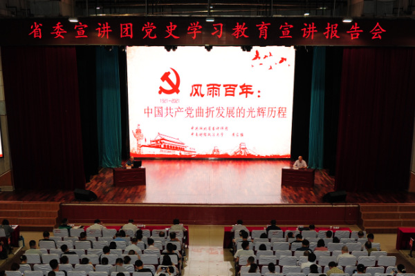 本网讯(融媒体记者 程丽鹃)6月7日下午,省委宣讲团成员、中南财经政法大学马克思主义学院副教授黄家猛受邀到我校作党史学习教育报告。我校全体在校校领导出席,副校长黄颂主持。