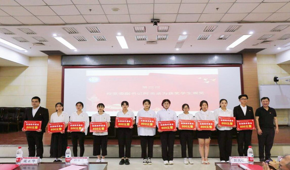 管理学院师友•学友行动联系部门领导:人事处处长刘元锋、学工部部长金殿中、校团委书记文敏、财务处处长王诗龙分别以“深入学习党史,赓续精神力量”为题,为现场的学生党员、入党积极分子作思想引领宣讲。管理学院分党委书记戴正华介绍了“迅饶助学基金”设立的初衷,并宣读了表彰决定。