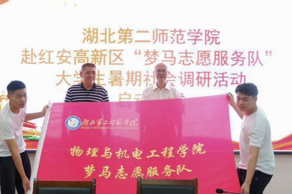 “梦马志愿服务队”30名学生将在我校两名挂职红安的博士教师精心指导下,结合所学专业和红安县产业发展布局,深入开发区有关企业开展调研,形成调研成果,促进县校合作和县域经济发展。