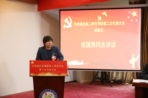 张国秀致闭幕词。她指出,这次党代会是一次旗帜鲜明、鼓舞人心的大会,是一次发扬民主、凝聚共识的大会,是一次纪律严明、风清气正的大会,是一次承前启后、继往开来的大会。会议总结了学校第一次党代会以来的主要成绩和基本经验,实事求是地分析研判了学校发展进程中面临的重大机遇,明确了“十四五”时期和2035年远景目标,确立了“一个根本保障即党的领导,两步走发展步骤、四大战略安排、六个重点突破、八大工作抓手”总体工作思路。