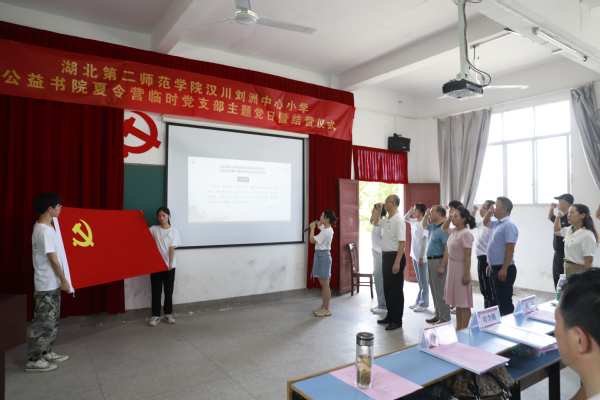 本网讯(通讯员 夏紫依)7月14日上午,我校新闻与传播学院在汉川市刘洲中小学校举行公益书院夏令营临时党支部主题党日活动暨结营仪式,我校党委常委、副校长黄颂出席。