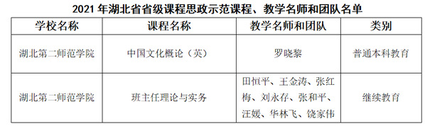 本网讯(通讯员 杜文娟)近日,省教育厅公布了2021年省级课程思政示范课程项目名单。我校《中国文化概论(英)》《班主任理论与实务》两门课程入选省级课程思政示范课程,授课教师及团队获课程思政教学名师和团队。学校课程思政教学研究中心被认定为省级课程思政教学研究示范中心。