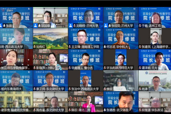 研修阶段包括专家授课和分组研讨两个环节。在专家授课环节,中国人民大学副校长胡百精、中国传媒大学原副校长丁俊杰、中国新闻传播教育年鉴编撰委员会主任张昆、兰州大学新闻与传播学院院长冯诚、中国人民大学新闻学院执行院长周勇、武汉大学新闻与传播学院院长强月新、中国教育电视台总编辑胡正荣、复旦大学新闻学院执行院长兼党委书记张涛甫、暨南大学党委书记林如鹏、中国传媒大学新闻学院院长隋岩教授等专家分别作了高水平的报告分享。在分组研讨环节,专家学者们汇聚线下“云”上,围绕新闻传播学院的共性问题及各自特色进行了分享和探讨。