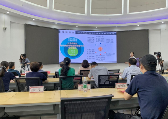 本网讯(通讯员 杨雯)8月26日,教育部中外人文交流中心举办的全媒体产教融合线上交流会在线上举行,本次会议的主题是我校新闻与传播学院申报人文交流全媒体产教融合示范基地的答辩会,会议由北京容艺教育咨询有限公司董事长李霞主持。我校副校长夏力、教务处处长田恒平、国际交流合作处副处长崔卿出席学校一号楼多功能报告厅分会场现场。