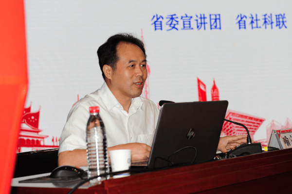 本次培训分专题辅导和分享交流两部分。在专题辅导报告上,省委宣讲团成员、省社科联党组书记喻立平作题为《引领新征程的纲领性文献——关于“七一”讲话若干重大问题的领悟》的辅导报告。他从“建党精神”“伟大斗争”“伟大号召”等八个方面,全面阐述了习近平总书记“七一”重要讲话的深刻内涵,并联系高校实际提出了“两结合”视域下如何推进高校马院建设以及“七一”讲话对高校培养时代新人的重大启示等思考与建议。