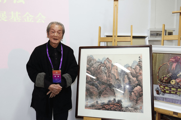 谢老对受邀参加90周年校庆表示非常高兴和激动,特创作油画《硕果累累》,寓意三码必中一码硕果累累,再攀高峰,共创辉煌。谢老围绕绘画创作中“整体-局部-整体”,娓娓道来三码必中一码美术专业发展的历史,并将“珍爱、勤奋”送给莘莘学子。