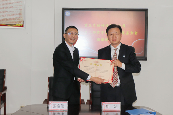 捐赠仪式上,计算机学院院长杨莉介绍了学院历史沿革、专业建设、师资力量及相关荣誉;企业代表张席伟介绍了公司基本情况,代表重庆步航科技有限公司向我校教育发展基金会捐赠200万元,他希望通过捐赠,助力学校人才培养、科研教学。