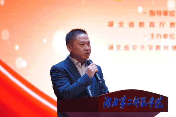 本网讯(通讯员 刘欣 李念文)10月31日,2021年湖北省师德建设主题作品展示活动在我校大礼堂拉开帷幕。湖北省教育厅教师管理处相关负责人,我校副校长、省继教中心主任胡兴;省中小学继续教育中心常务副主任王勇;省教育学会教师教育专业委员会秘书长王祖琴、副秘书长胡松林;湖北长江报刊传媒集团党委书记、董事长肖昌斌,党委副书记、总经理周发秋,党委委员、副总经理张勤、叶凌凯等领导,以及荣获优秀组织奖的11个地市教育局、40家区县教育主管部门和部分学校教师、我校“优师计划”和“行知实验班”师范生代表参加活动。