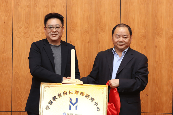 许邦官和谭伟一同为学前教育岗位课程研究中心揭牌。(编辑 张震 供图 安莉)