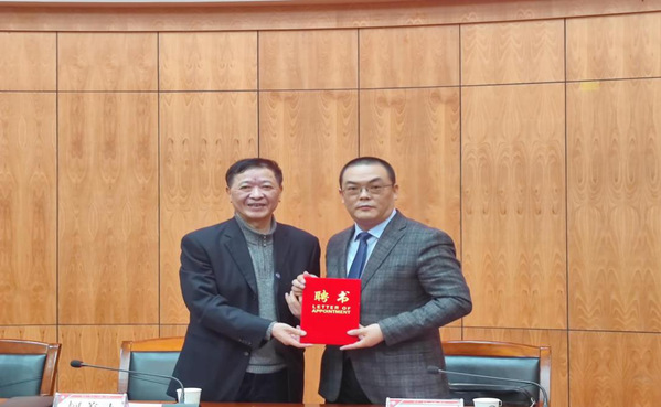 柯美录为赵晓飞教授颁发聘书,他希望,管理学院在赵教授的指导下,队伍建设、学术研究、学科与专业发展,人才培养等方面能取得更大突破,迈入高质量发展新阶段。
