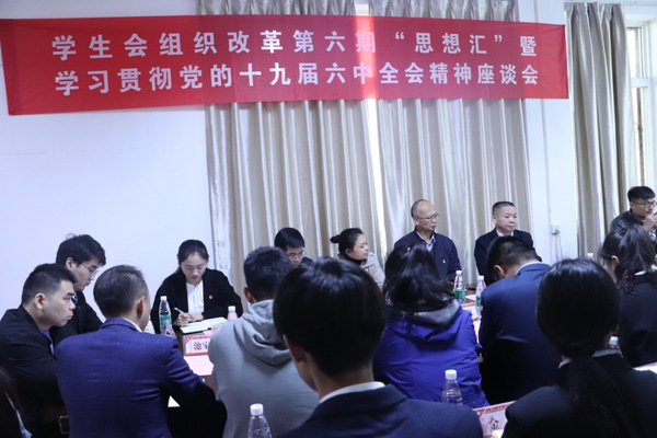 本网讯(通讯员 周君儒)11月26日,校团委在学生会会议室召开第六期学生会组织改革“思想汇”学习贯彻党的十九届六中全会精神座谈会。副校长黄颂出席会议。校学生会主席团成员敖伟昊主持会议。