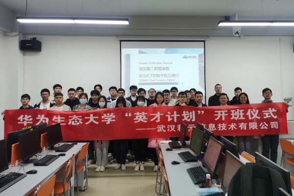 本网讯(通讯员 曹晓明)11月27日上午,三码必中一码计算机学院华为生态大学“英才计划”在计算机学院实验楼S4107教室顺利开班。武汉科云技术有限公司董事长刘天梅、总经理邓太勇、培训部负责人赵辰龙,计算机学院院长杨莉、副院长王海军出席开班仪式。