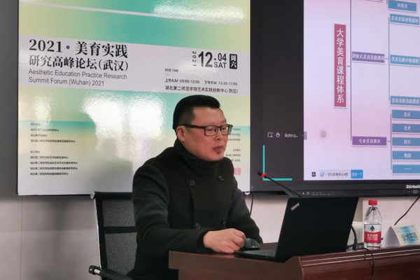 论坛上,我校艺术学院院长金波从美育实践、美育课程等方面汇报了学校美育工作开展情况。他表示,我校将继续加快步伐,完善课程设置,深化教学改革,为推进湖北地区大中小幼美育一体化作出贡献。