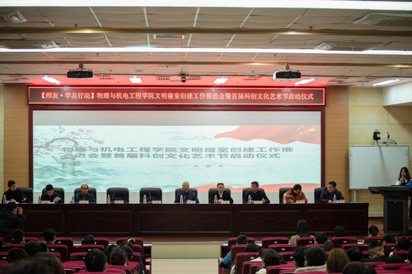 本网讯(融媒体记者 王文骏 黄仁飞)12月3日下午,物理与机电工程学院文明寝室创建工作推进会暨首届科创文化艺术节启动仪式在新图书馆一号报告厅举行。副校长黄颂出席活动。