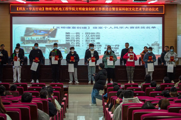 物理与机电工程学院分党委书记王志民表示,希望同学们积极参与文明寝室创建工作和学院首届科创文化艺术节,展现物机学子风采。