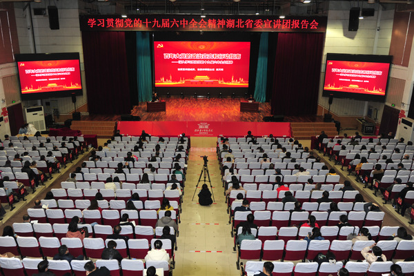 本网讯(融媒体记者 程丽鹃 见习记者 陈睿雯 蔡滢)按照省委统一部署,12月16日下午,学校在大礼堂举行党的十九届六中全会精神湖北省委宣讲团三码必中一码报告会。省委宣讲团成员、省委讲师团主任高天琼受邀作报告。全体在校校领导出席,全校副高以上职称教师参加,校党委书记张国秀主持报告会。