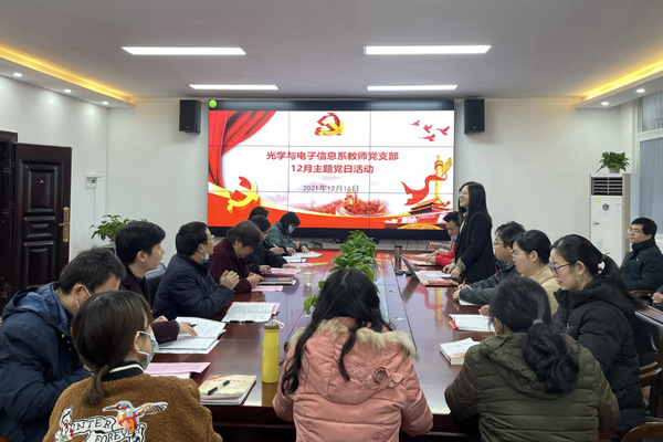 物机学院班子成员、组织员、光学与电子信息系教师党支部全体党员参加活动。(编辑 张震 供图 张锐)