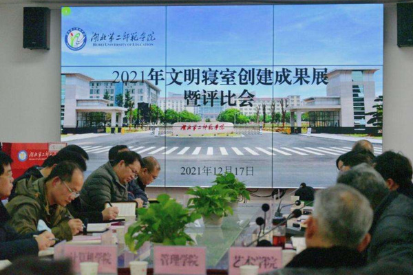 本网讯(通讯员 王俊娇 任欣)12月17日下午,学校在物理与机电工程学院会议室召开2021年文明寝室创建成果暨评比会。宣传部、学工部、综合治理与安全保卫部、教务处、后勤集团相关负责人,各教学学院副书记、学工办主任参加会议。物理与机电工程学院辅导员任欣主持会议。