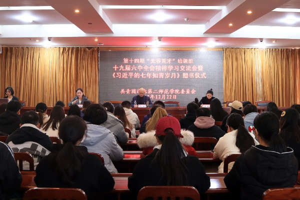 本网讯(通讯员 钱晓琳 朱文杰)12月22日中午,学校在行政楼五号会议室举行第十四期“光谷英才”大学生骨干培训班“党的十九届六中全会精神”学习交流会暨《习近平的七年知青岁月》赠书仪式。副校长黄颂、校团委书记文敏出席活动。第十四期“光谷英才”大学生骨干培训班全体学员参加活动。校团委组织部指导老师钱晓琳主持活动。