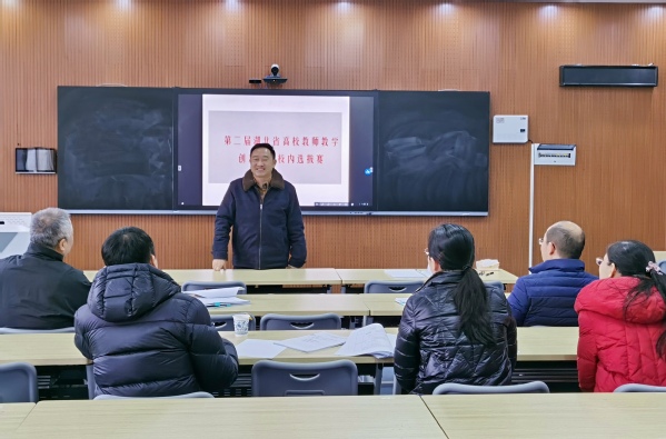 本网讯(通讯员 高于朴)1月7日,学校在4203教室举行“第二届湖北省高校教师教学创新大赛” 校内选拔赛。