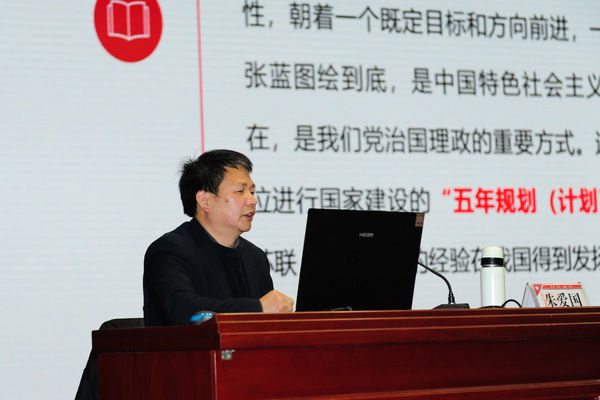 湖北省教育科学研究院战略与规划研究室主任朱爱国作了《把宏伟蓝图变成美好现实——关于教育“十四五”规划的政策解读和实施建议》专题报告。他围绕“历史交汇点上的湖北教育宏伟蓝图、建设高等教育强省的重大战略部署、建成高水平师范大学的二师行动方案”三个方面重点介绍了湖北教育“十四五”规划、我省高等教育发展方向、路径、重大举措,并对我校发展规划和远景目标提出建议。