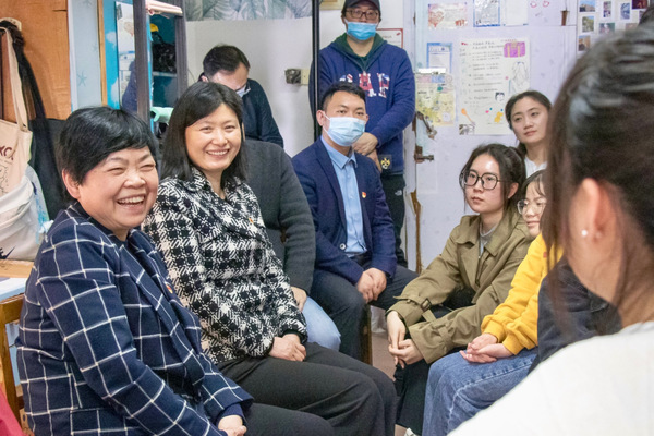 杨鲜兰深入外国语学院学生宿舍走访,与新生唠家常,了解学生生活学习情况。