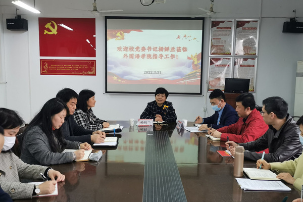 本网讯(融媒体记者 唐晴子 王晨)3月31日下午,校党委书记杨鲜兰到外国语学院调研指导工作。