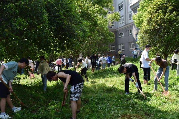 劳动现场,陈勇与师生们亲切交流。他讲到,劳动实践教育是“管理育人、服务育人”的重要实践过程,大家要通过参与劳动,强化实践体验,锻炼意志。