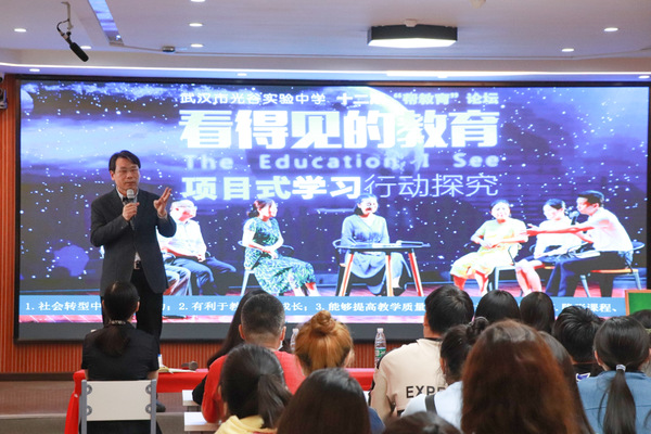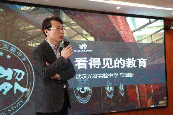 马国新作题为《看得见的教育》的专题讲座。他讲到,“一定要思考教育究竟是什么?”“怎样开展?”“教育是帮的艺术”,看得见的教育是一所学校的文化与理念,是学校教育文化的寻找过程。他认为,“教育是一种因爱而生、为成长而来的帮助”,通过光谷实验中学的成功案例,进一步展示这一教育理念所蕴含的强大生命力,让大家了解教育的真谛。