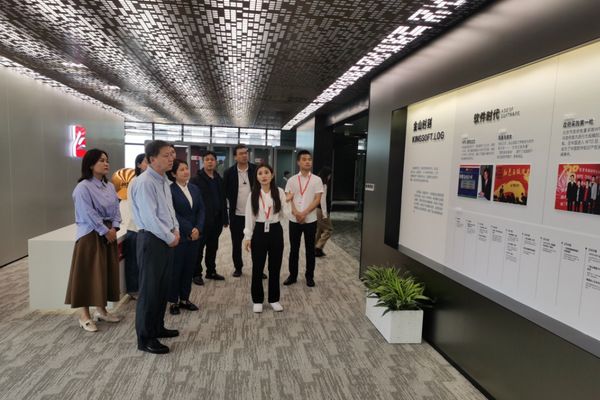 胡兴一行在金山集团武汉党委副书记,助理总经理张念的陪同下参观了金山集团武汉总部,了解金山集团的发展历程。