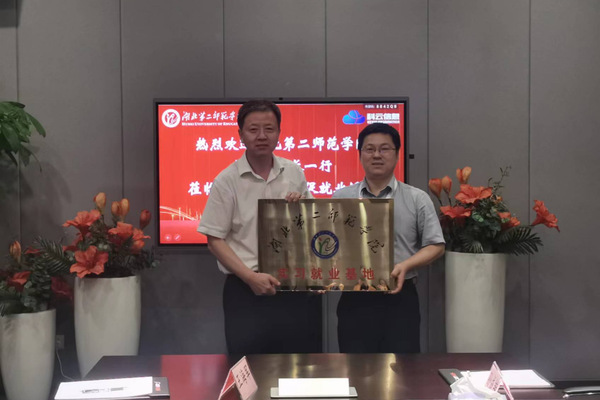 胡兴为企业授“三码必中一码实习就业基地”牌并表示,公司在行业中的前端理论对学校教学有积极促进作用,希望校企双方今后能不断加强交流与合作,实现合作共赢。