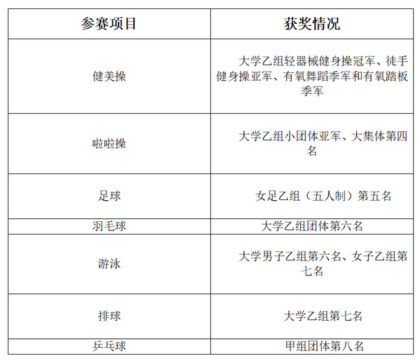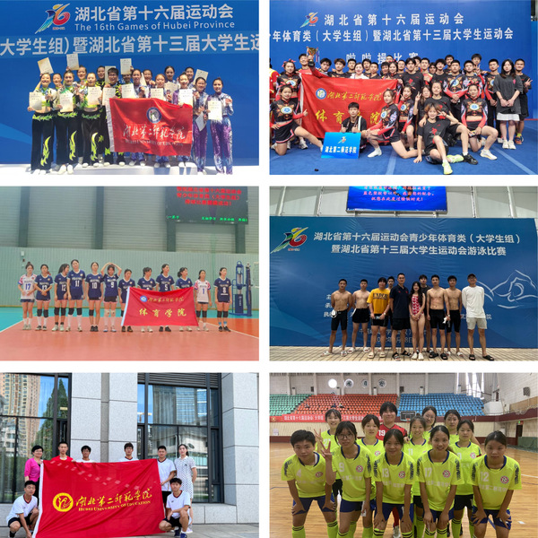 本网讯(通讯员 尹开宁)6月18日至7月13日,湖北省第十六届运动会青少年体育类(大学生组)暨湖北省第十三届大学生运动会比赛陆续进行。我校代表队参加了健美操、啦啦操、游泳、足球、排球、羽毛球、乒乓球等项目的比赛,均获佳绩。