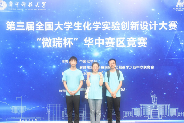 本网讯(通讯员 缪光靖 段宜嘉)7月21日上午,由中国化学会和教育部高等学校国家级实验教学示范中心联席会主办的2022年第三届全国大学生化学实验创新设计大赛“微瑞杯”华中赛区竞赛在华中科技大学举行。在孙建明、张蕾老师的悉心指导下,我校化学与生命科学学院缪光靖、段宜嘉、刘愫涵等三位同学的作品《红旗为什么那样红》入围华中赛区现场赛并荣获二等奖;刘志强、魏汝、沙琼等三位同学的作品《以箬叶“碳”究Cr(Ⅲ)和Cr(Ⅵ)的检测与吸附》荣获三等奖。