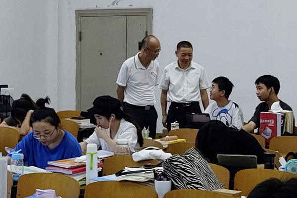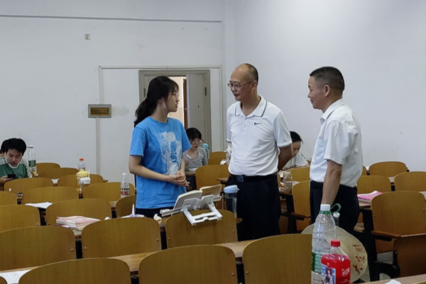 黄颂来到10号教学楼一楼自习室,与同学们亲切交谈,仔细询问大家学习生活情况;叮嘱同学们在复习备考过程中要注意劳逸结合,保持良好的生活习惯;提醒大家近期天气炎热,一定要做好防暑降温。