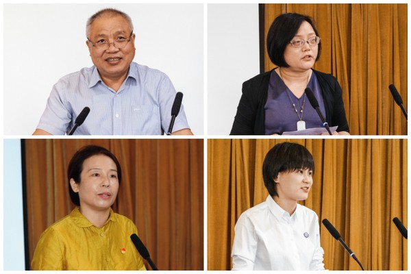 表彰会上,校领导分别为退休教师献花、颁发纪念品,为从教三十年教师颁发荣誉证书;退休教师代表冯光庭、从教三十年教师代表杨莉、中青年教师代表王培喜、新进教师代表熊恺妮等分别分享了个人感悟,表达了对教书育人事业和对学校的热爱,并为学校发展建言献策。