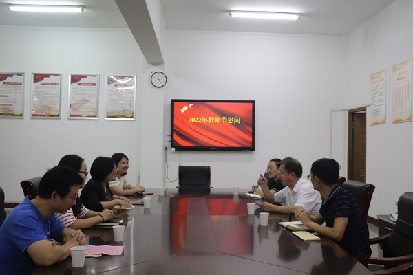 本网讯(通讯员 肖沫晔)9月9日下午,全国第38个教师节前夕,校党委副书记胡兴到计算机学院看望慰问教师,代表学校向全体教职工表示节日祝贺。计算机学院党委书记陈慧敏、院长杨莉及优秀教师代表参加座谈。
