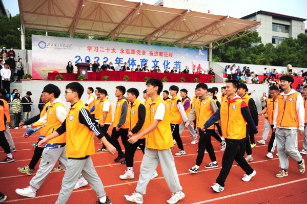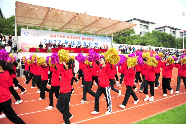 本网讯(融媒体记者 张震)10月24日上午,2022年体育文化节暨秋季运动会开幕式在学校体育场隆重举行。校党委书记杨鲜兰,校长郑军,校党委副书记胡兴,副校长黄颂、夏力,校党委常委周忠出席开幕式。体育运动委员会全体成员及各教学学院党委(总支)书记、院长参加开幕式。副校长陈勇主持开幕式。