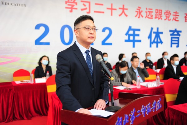 郑军致开幕词。他代表学校和本届体育运动委员会,对大会的召开表示热烈的祝贺!他表示,学校始终将体育建设摆在重要位置,始终秉承“正己达人,以生为本”的办学理念,全面落实立德树人根本任务,大力实施大学生核心素养培育工程,注重学生健康与审美素养培育,坚持培养德智体美劳“五育并举”的新时代人才,在全校师生的共同努力下,学校在体育事业建设上硕果累累。
