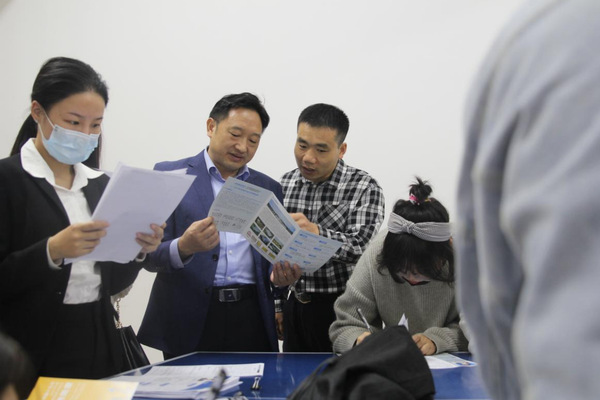 田恒平与招聘企业代表深入交谈,并代表学校对大家表示欢迎。田校长鼓励现场应聘的毕业生积极展示,勇于表达,争取求职机会。