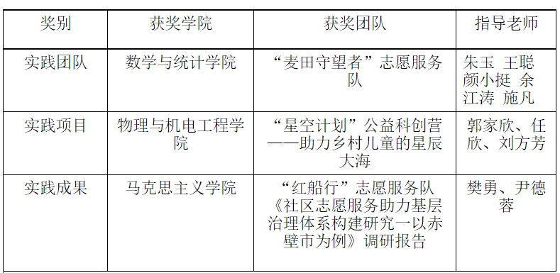 “全国大学生暑期实践团队TOP100”我校实践队获奖情况
