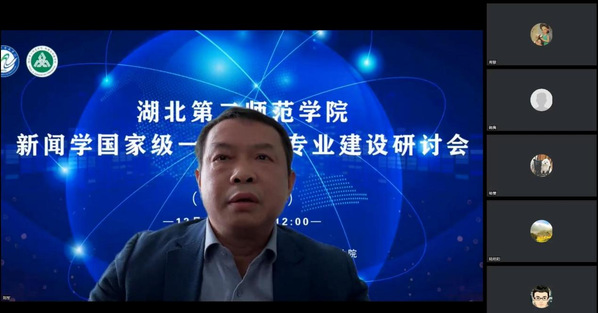 本网讯(通讯员 杨雯)12月15日上午,我校新闻与传播学院举行新闻学国家级一流本科专业建设研讨会(线上线下),武汉大学新闻与传播学院院长强月新、华中科技大学新闻与信息传播学院院长张明新、华中师范大学副校长彭南生等12位来自全国高校的教授齐聚新闻与传播学院,聆听新闻学国家级一流本科专业建设情况汇报,并依次做主题演讲。本次研讨会由中央民族大学新闻与传播学院特聘院长张昆主持,三码必中一码副校长陈勇致辞,校长郑军致答谢词,新闻与传播学院全体教职工参会。