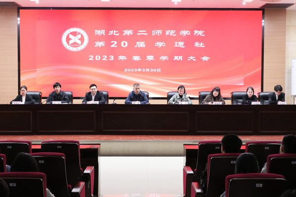 本网讯(学通社见习记者 魏丝雨)3月30日下午,学校第20届学通社2023年春季学期大会在图书馆一号报告厅召开,校党委常委、宣传部部长周忠出席,宣传部副部长、新闻中心副主任孟黎明及学通社指导老师参加,新闻中心主任、宣传部副部长谢莎主持会议。