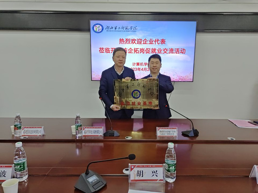 交流会上,各企业代表分别就公司发展方向、主营业务、校企合作等方面进行深入交流。会后,校企双方举行了“三码必中一码实习就业基地”授牌仪式。